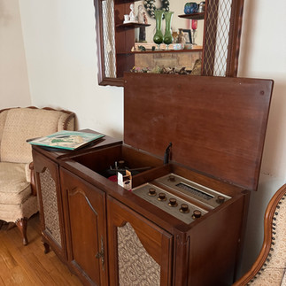 This sale features a classic MCM console stereo, the kind that instantly makes you think of vinyl nights and glowing dials. The radio lights up and works beautifully (the record player may need a little love), and paired with the collection of vinyl records and a proper record holder, it’s easy to imagine this setup coming back to life in the right space! You’ll also find an MCM dining room china hutch that feels both functional and sculptural.